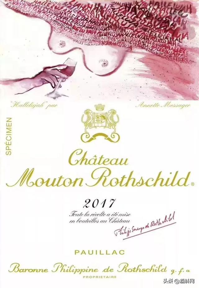 自1945年以來(lái),木桐酒莊每年都會(huì)邀請(qǐng)一位藝術(shù)家進(jìn)行藝術(shù)酒標(biāo)繪制。2017年份由法國(guó)藝術(shù)家安妮特·梅塞格(AnnetteMessager)受邀繪制。