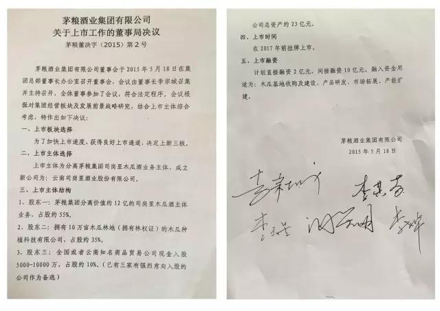 為了加快上市速度,獲得良好上市通道,經(jīng)集團董事會研究,決定改變原整體A板上市的戰(zhàn)略方案,決定把司崗里木瓜果酒產(chǎn)業(yè)從茅糧集團中剝離出來,于2017年實現(xiàn)剝離后的獨立產(chǎn)業(yè)在新三板掛牌上市,計劃實現(xiàn)直接融資2億元,間接融資10億元。