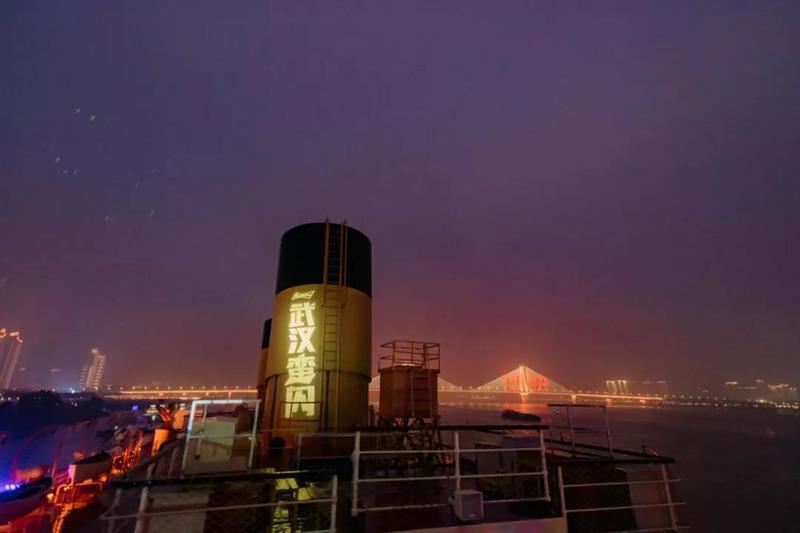 當(dāng)晚八點(diǎn),隨著一聲劃破夜空直擊心靈的電音響起,“知音號”甲板上“武漢蠻閃(sán)”的字樣被瞬間點(diǎn)亮,伴隨著長江兩岸的燈光華彩,停泊已久的“知音號”鳴笛拔錨啟航,巡江而下,帶領(lǐng)全國數(shù)萬名觀眾在線云游江城,共同感知這座極具煙火氣城市的回歸。