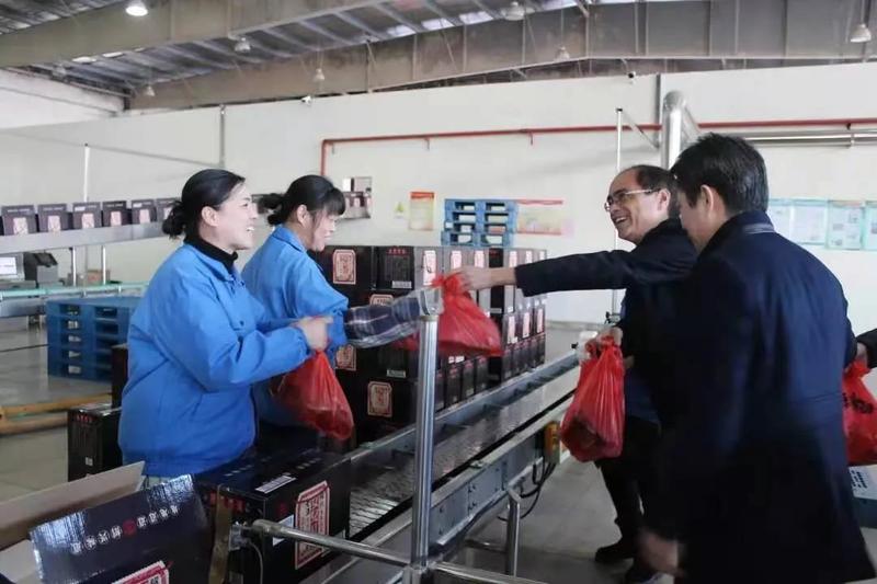 公司領(lǐng)導(dǎo)柏宏來(lái)到紹興鑒湖釀酒有限公司,看望慰問(wèn)鑒湖一線(xiàn)加班職工。