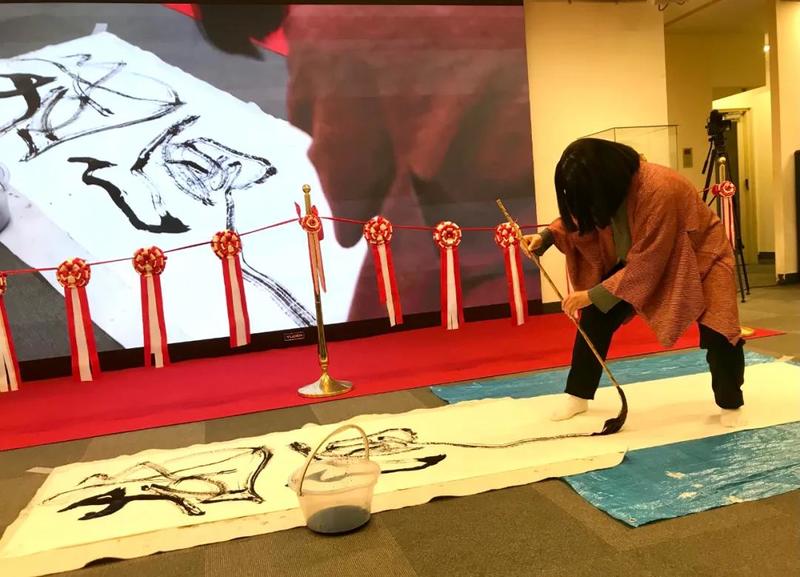 開幕式上,日本書道家-田坂州代女士潑墨揮毫寫下【越酒行天下】